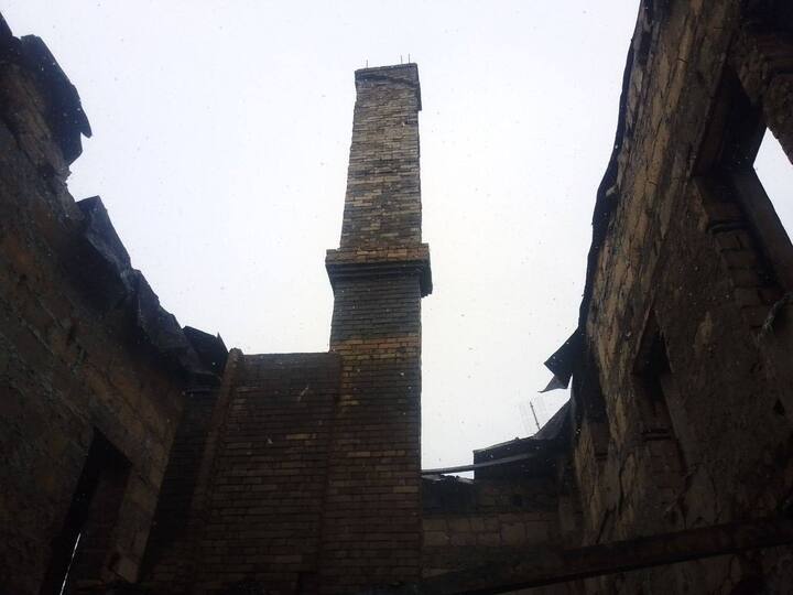 В результате пожара все строение выгорело изнутри. А в одном из помещений было обнаружено тело человека. На месте работают дознаватели. Выясняется личность погибшего.