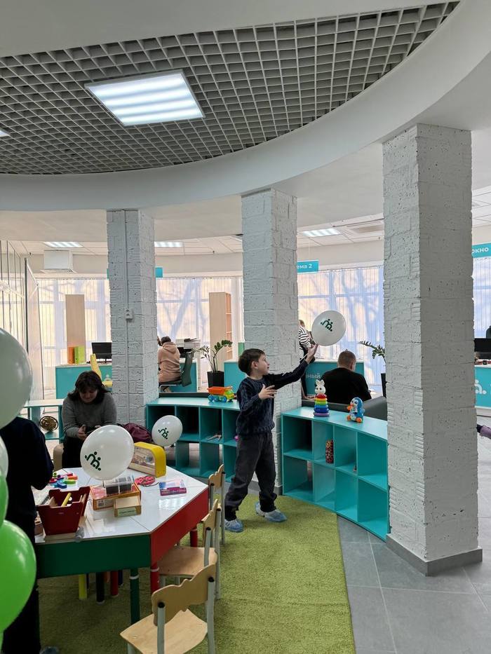 Для маленьких посетителей обустроили детский уголок с воспитателями, чтобы взрослые могли спокойно заниматься своими делами, пока дети будут под присмотром. Такой формат делает центр удобным для семей с детьми, объединяя комфорт и полезные услуги в одном месте.
