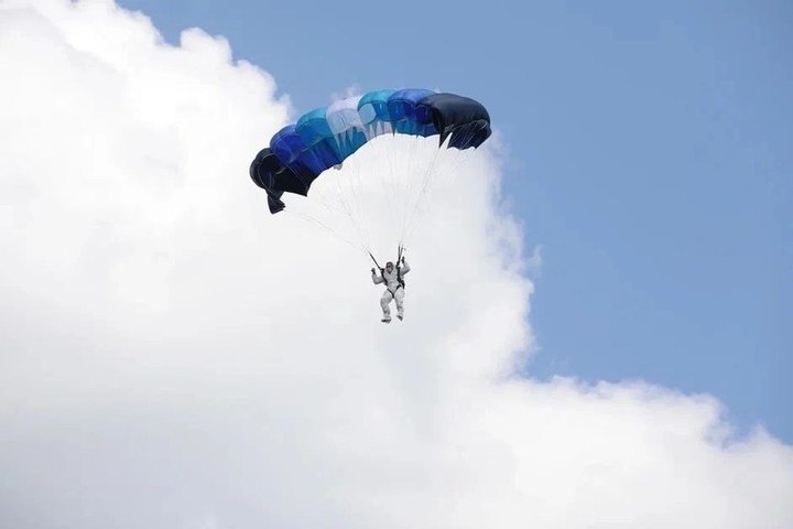 Кульминацией учений стал показ работы ветеринарного десанта. Ветврач десантировался с парашютом в самом центре очага инфекции.
