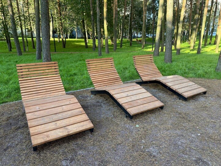 Во Всеволожске детскую площадку обустроили в сосновом парке. Там теперь установлен игровой городок с качелями и горками, скамейки и шезлонги, появилось освещение.