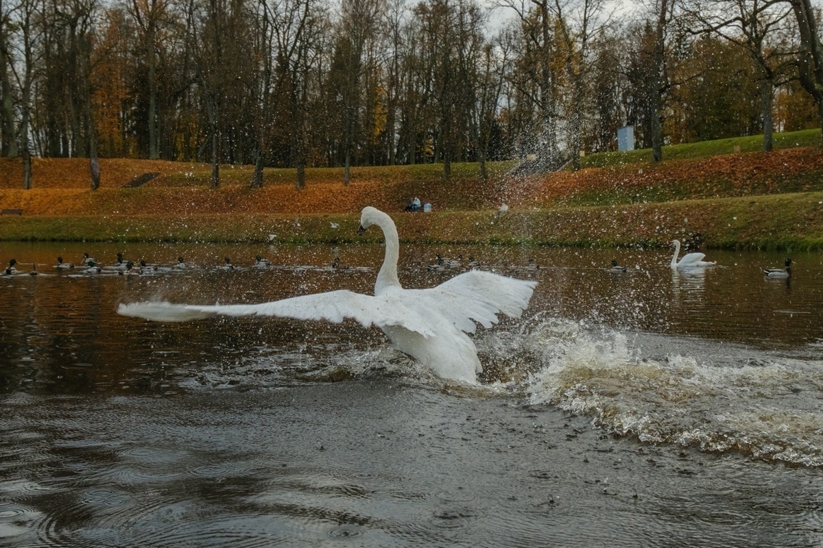 Телеграм-канал Гатчинского музея-заповедника сообщил, что в Карпином пруду снова появился его постоянный обитатель. И все «лебединое озеро» там теперь снова в полном составе.