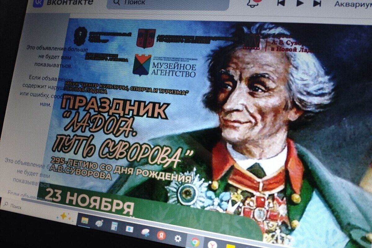 В Новой Ладоге, в Суворовском сквере 23 ноября пройдет общегородской праздник «Ладога. Путь Суворова». Он посвящен 295-летию со дня рождения великого полководца, сообщил паблик администрации Волховского района.