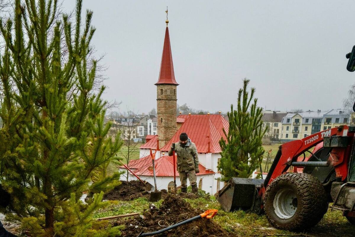У Приоратского дворца в Гатчине склоны станут зеленее. Там высадят около 100 новых деревьев: сосен, елей, берез, дубов и рябин.